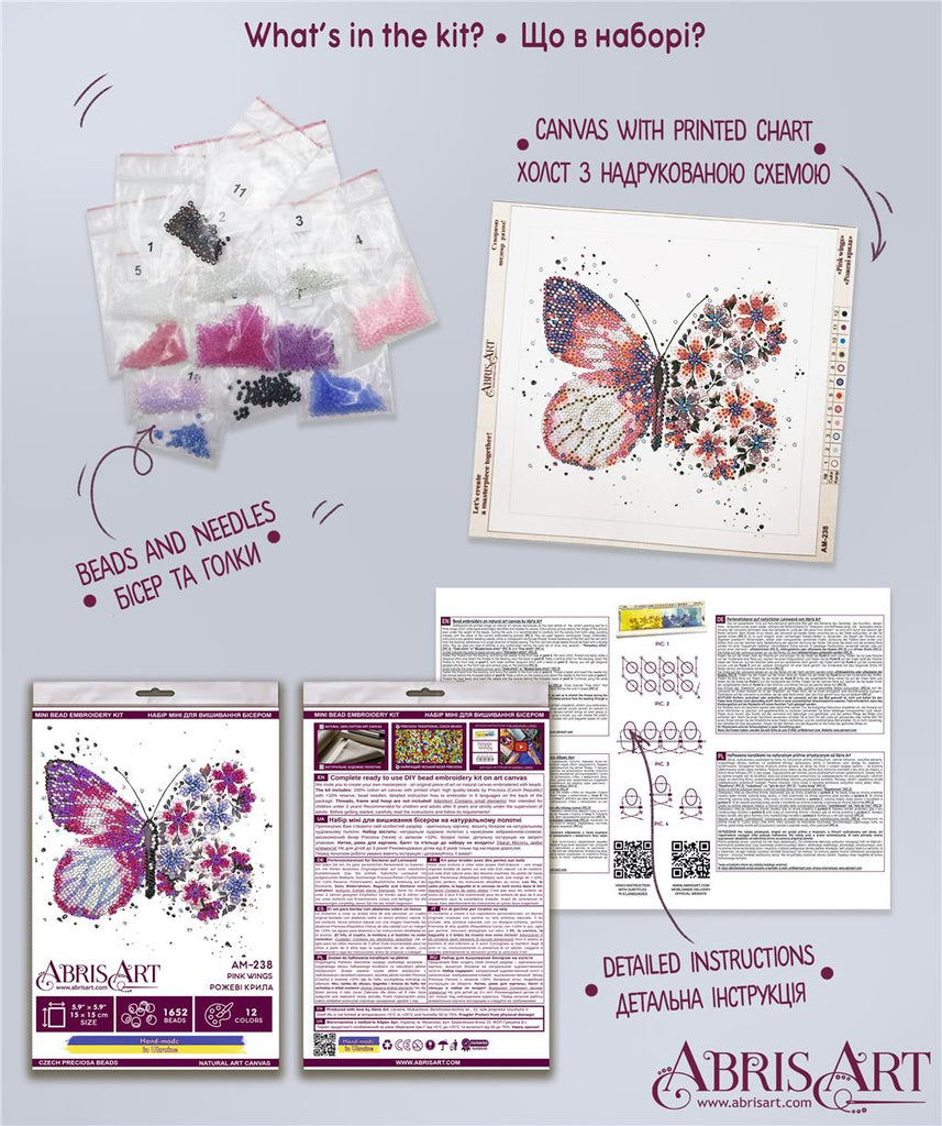 PINK WINGS BUTTERFLY ABRIS ART BEAD EMBROIDERY KIT MIDI 15cm x 15cm ( AM-238)