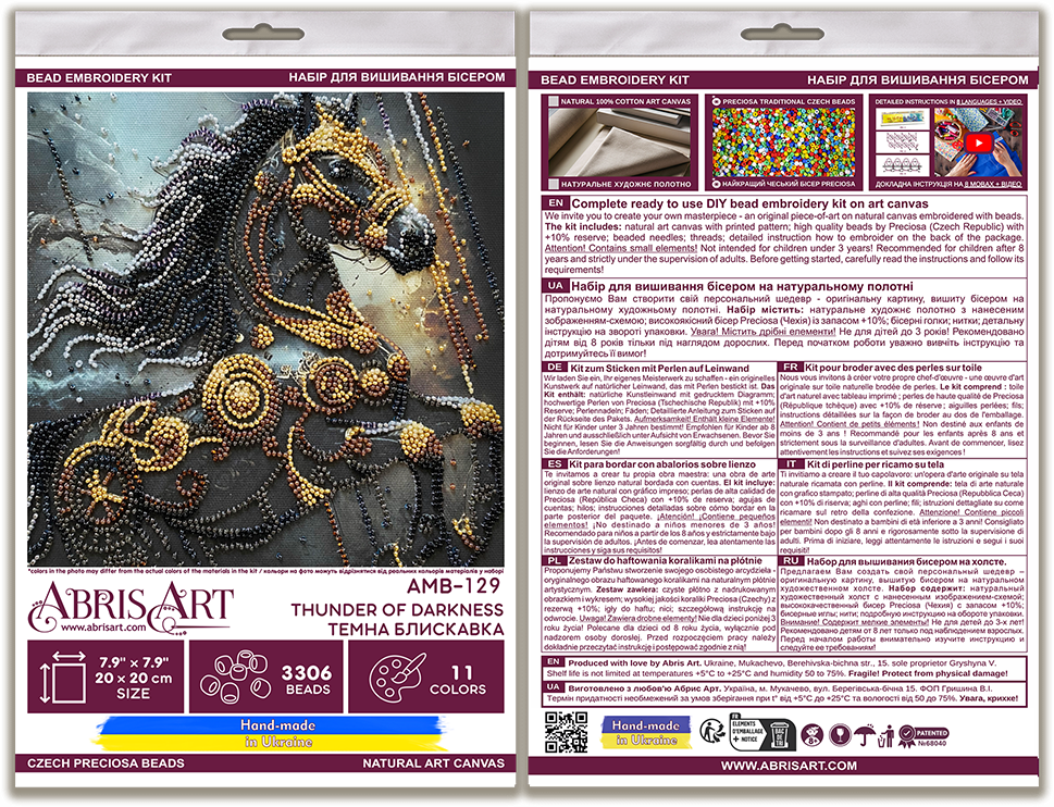 DARK LIGHTNING HORSE ABRIS ART BEAD EMBROIDERY KIT 20cm x 20cm ( AMB-129)