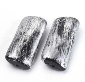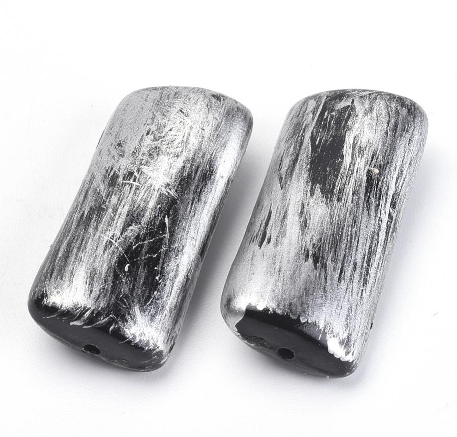 10 LARGE ACRYLIC FOCAL BEADS OBLONG 28mm x 17mm SILVER BLACK TOP QUALITY ACR153