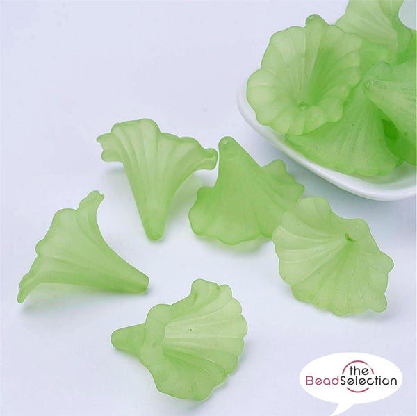 10 LARGE FROSTED LUCITE ACRYLIC LILY TRUMPET FLOWER BEADS 41mm GREEN LUC45