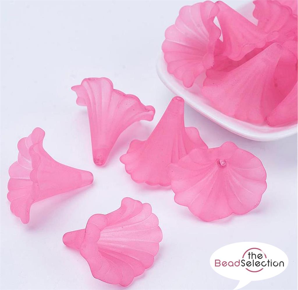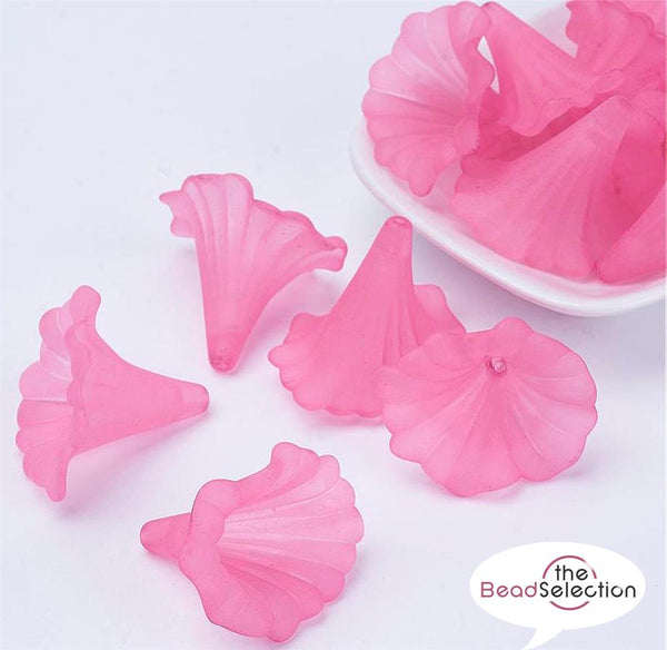 10 LARGE FROSTED LUCITE ACRYLIC LILY TRUMPET FLOWER BEADS 41mm PEARL PINK LUC36