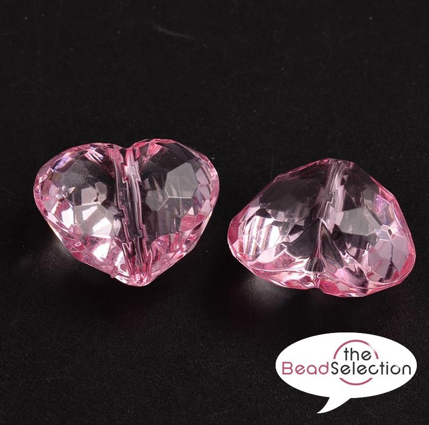 10 LARGE PINK ACRYLIC FACETED HEART BEADS charms 28mm jewellery making ACR107