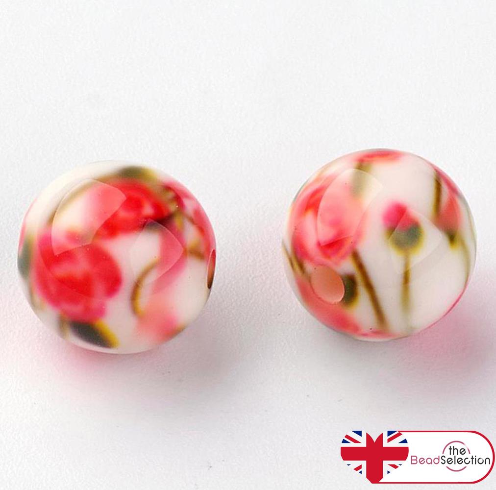 10 ROSE FLOWER ACRYLIC RESIN BEADS 10mm PINK JEWELLERY MAKING ACR156
