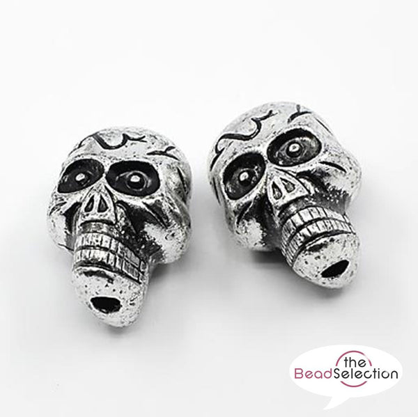 10 SKULL BEADS 23mm ACRYLIC ANTIQUE SILVER LARGE 3.5mm HOLE JEWELLERY ACR60