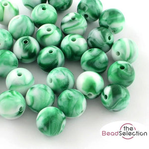 100 ACRYLIC BEADS GREEN MARBLED CANDY SWIRL ROUND 8mm TOP QUALITY ACR150