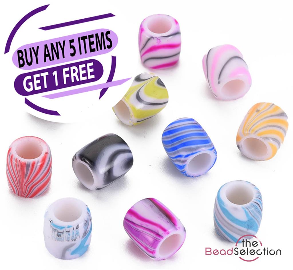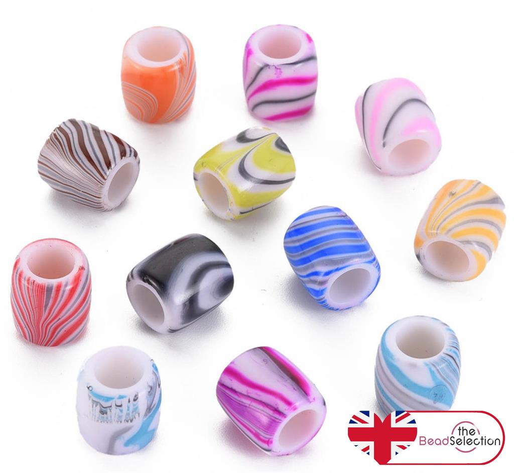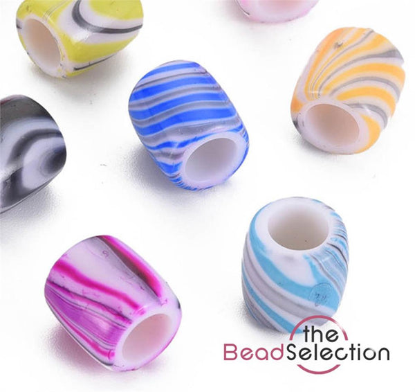 20 Acrylic Marbled Beads Candy Striped Barrel 14mm large 6mm Hole ACR241