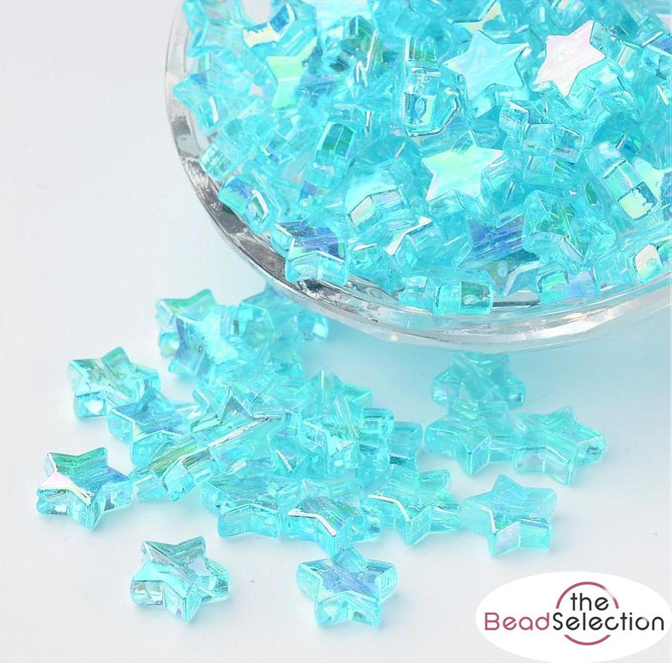 100 ACRYLIC STAR BEADS BABY BLUE AB RAINBOW PEARL LUSTRE 10mm TOP QUALITY ACR140