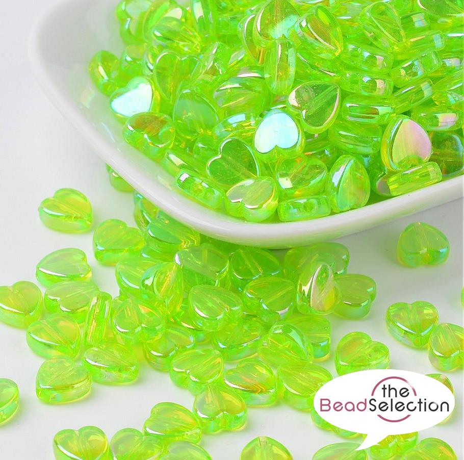 100 LIGHT GREEN 8mm ACRYLIC AB RAINBOW PEARL LUSTRE HEART BEADS ACR127
