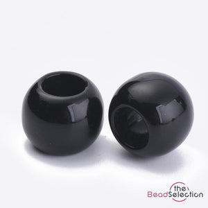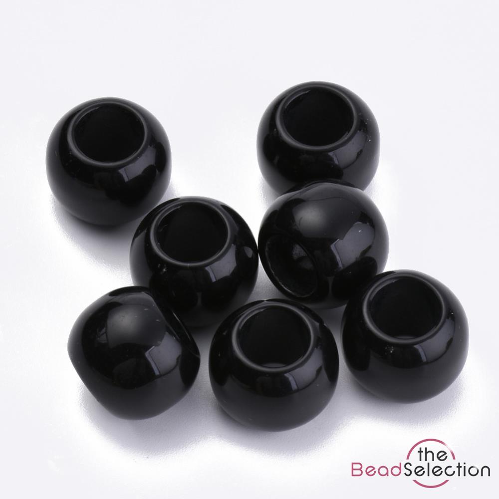 100 BLACK PONY BEADS ACRYLIC 10mm x 8mm LARGE 5mm HOLE ACR231