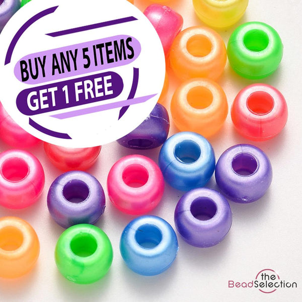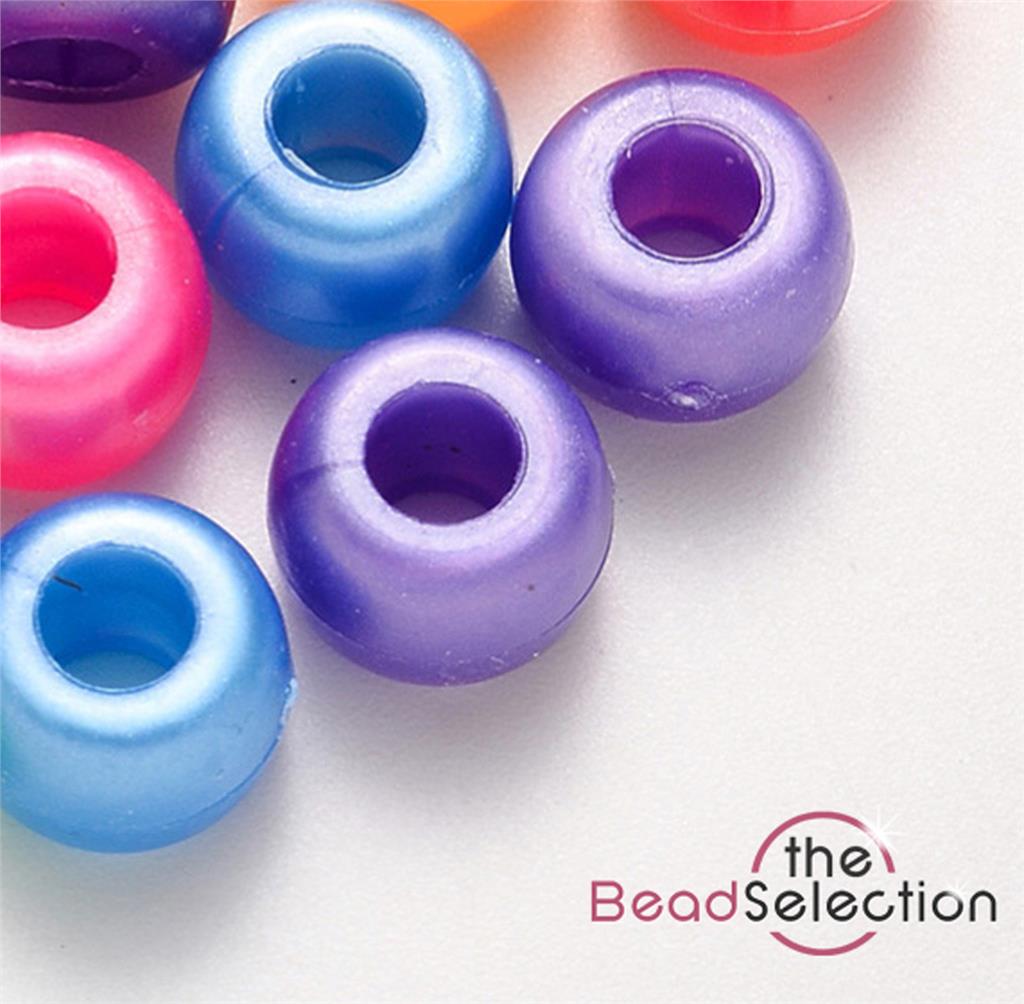 200 PEARL LUSTRE PONY BEADS ACRYLIC 9mm x 6mm LARGE 4mm HOLE ACR242