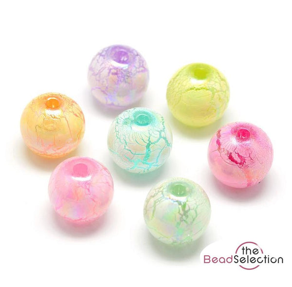 15 ROUND ACRYLIC BEADS CRACKLE PATTERN 14mm MIXED COLOURS TOP QUALITY ACR90