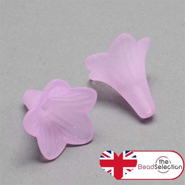 20 FROSTED LUCITE ACRYLIC LILY TRUMPET FLOWER BEADS 22mm VIVID PINK LUC69