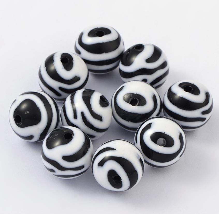ZEBRA STRIPED ACRYLIC BEADS ROUND.