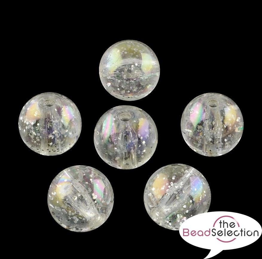 40 GLITTER AB LUSTRE CLEAR ACRYLIC ROUND BEADS 10mm HOLE 2mm TOP QUALITY ACR95