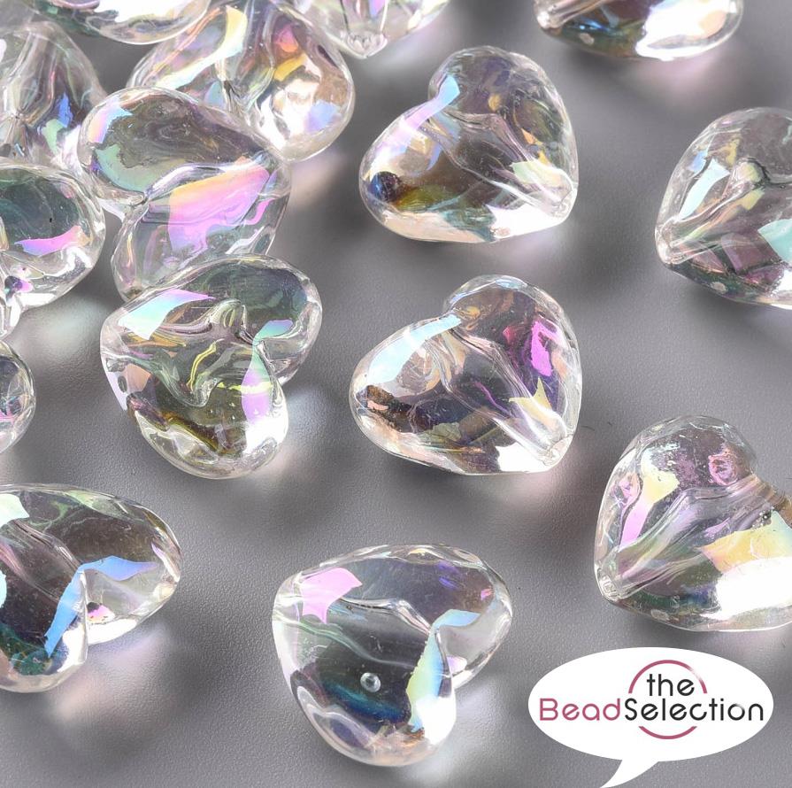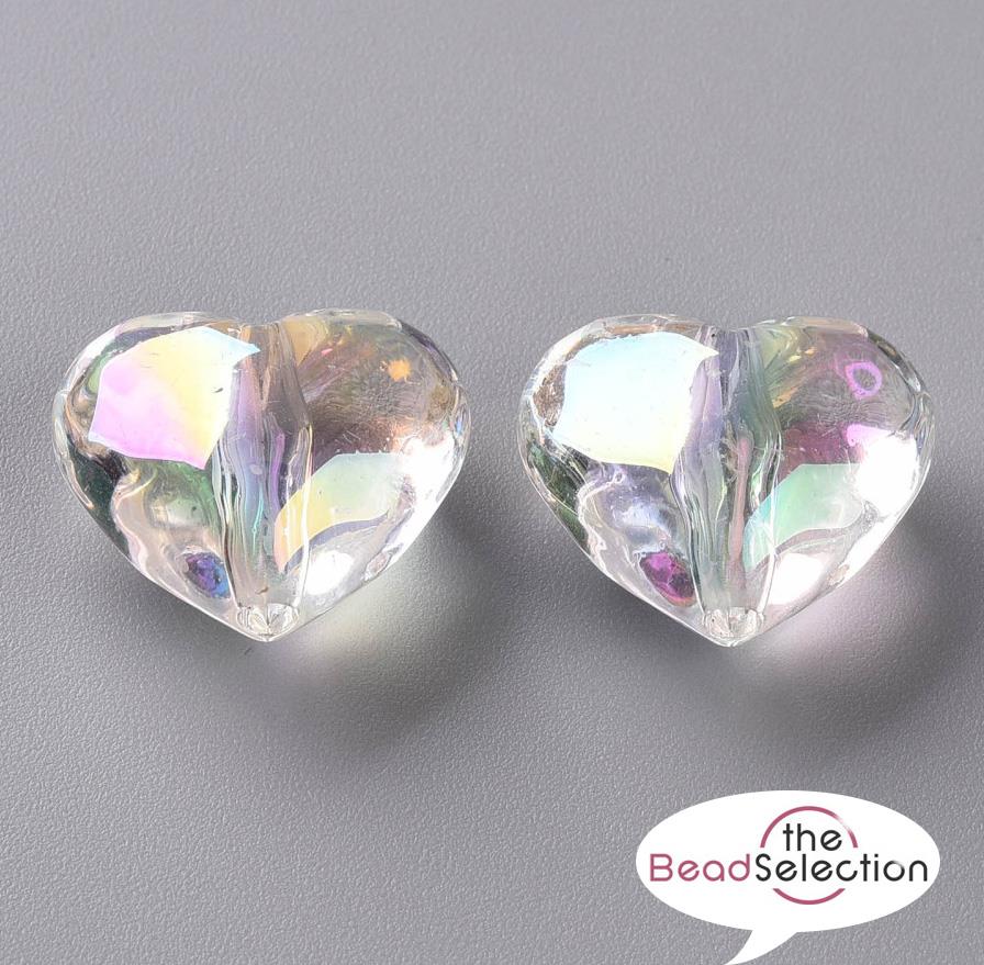 LARGE CLEAR AB RAINBOW HEART ACRYLIC BEADS.