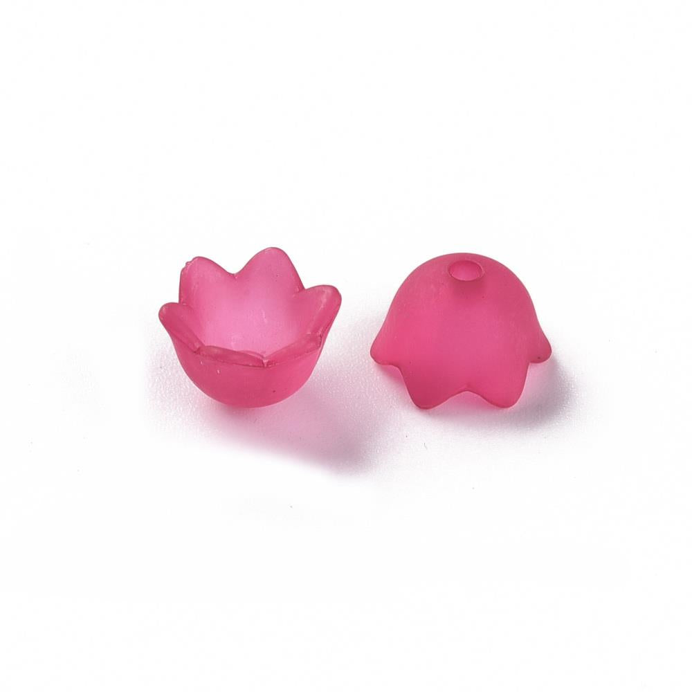 50 Flower Beads CERISE PINK Frosted Lucite Acrylic Bell Cup 10mm LUC79