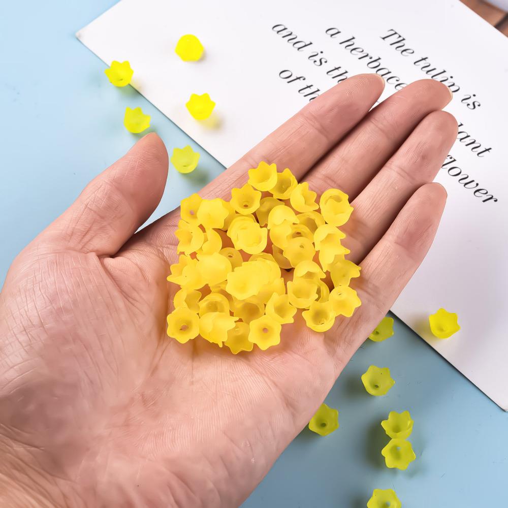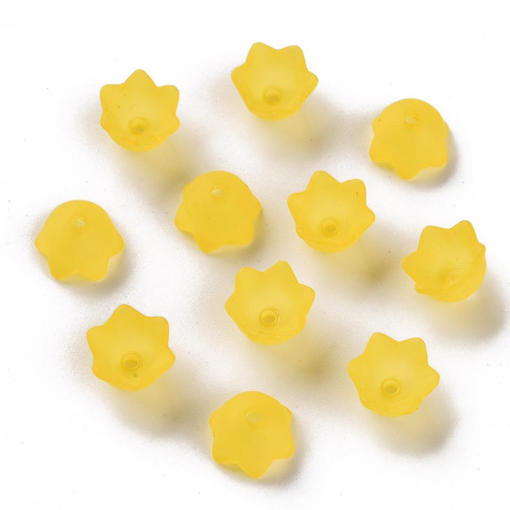 50 Flower Beads YELLOW Frosted Lucite Acrylic Bell Cup 10mm LUC81