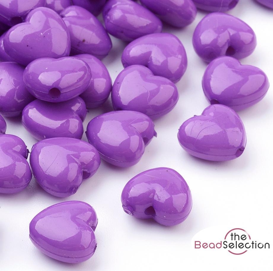 PURPLE OPAQUE COLOURED ACRYLIC HEART BEADS.