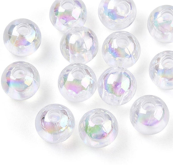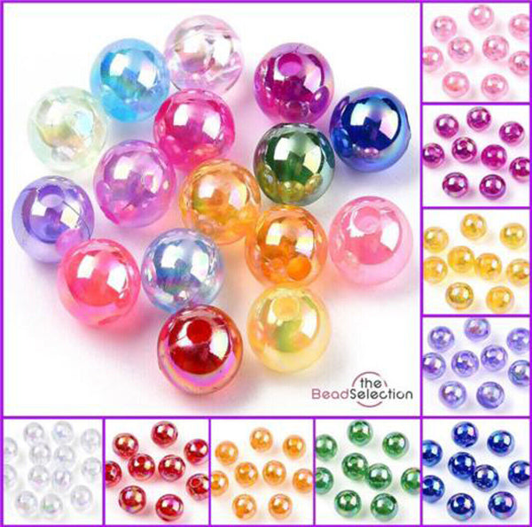 Clear'AB' Lustre Rainbow Pearl Beads 6mm 8mm 10m Round Colour Choice