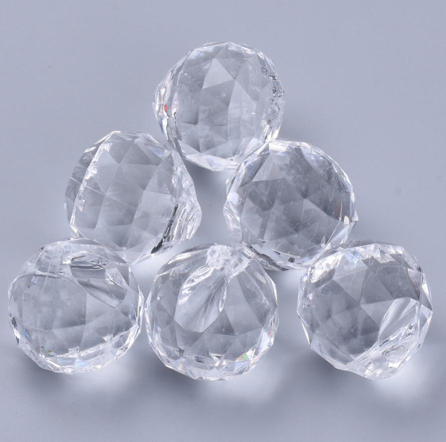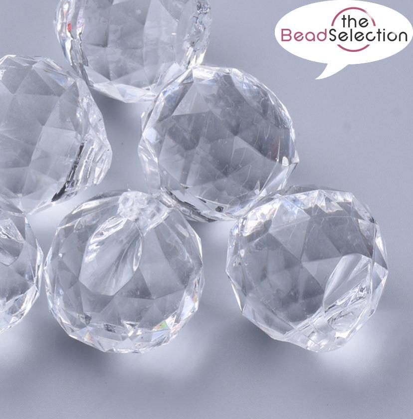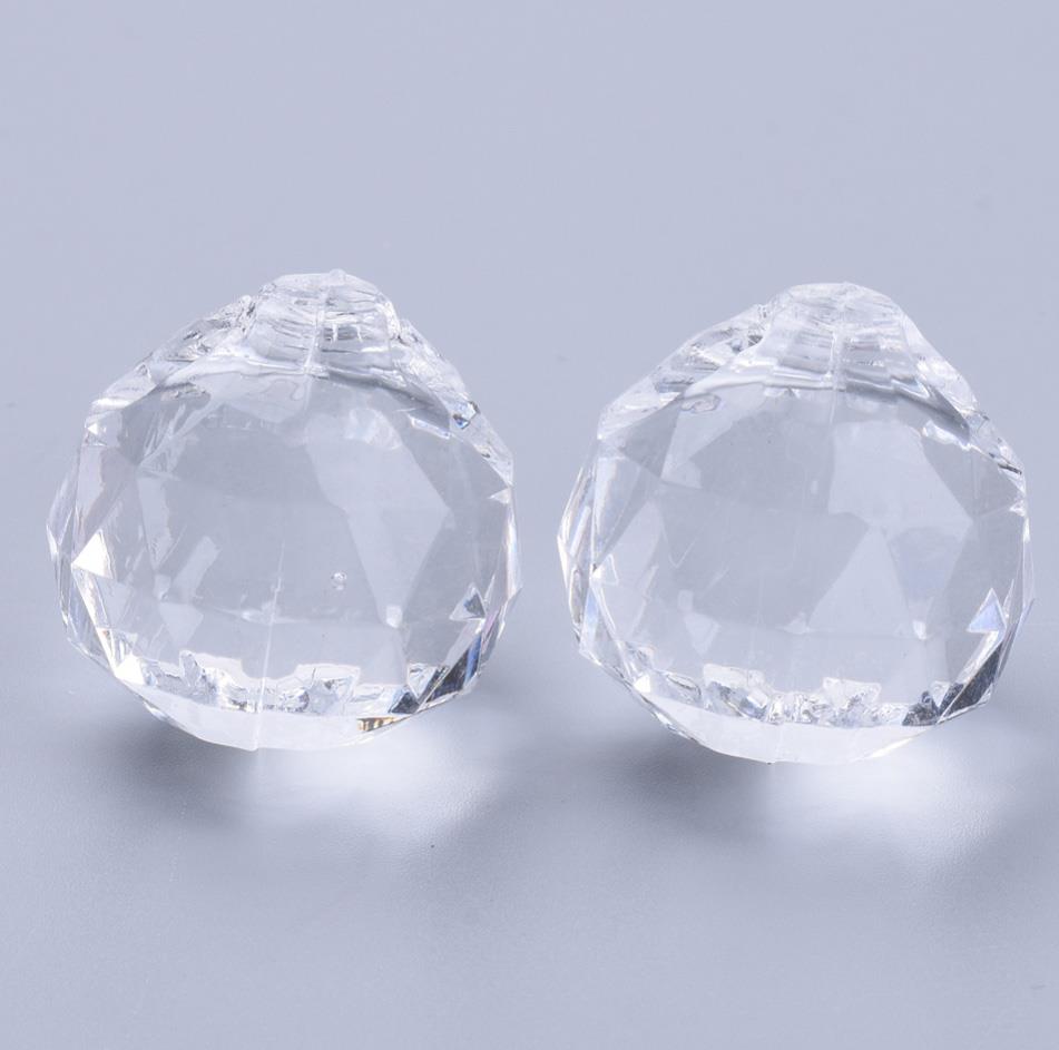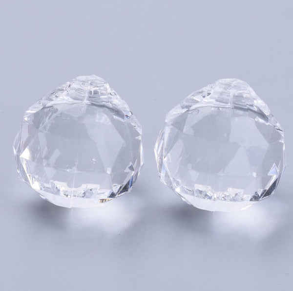 LARGE FACETED CLEAR ACRYLIC ROUND TOP DRILL PENDANT BEADS 40mm ACR201