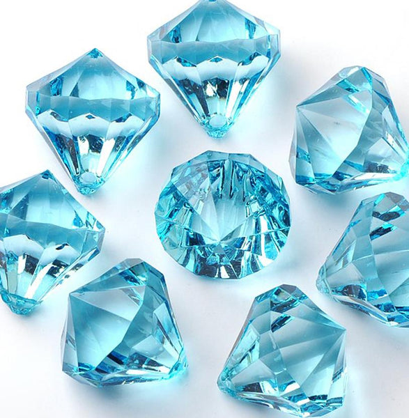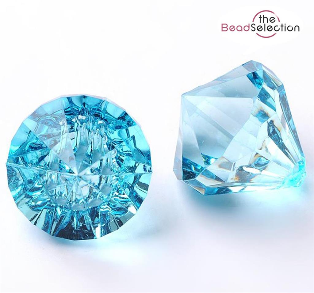 LARGE FACETED LIGHT BLUE ACRYLIC DIAMOND TOP DRILL PENDANT BEAD 31mm ACR184