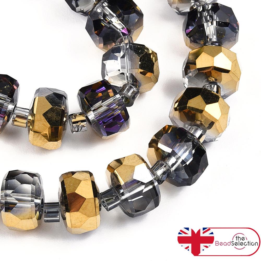 FACETED RONDELLE  BEADS AB RAINBOW GOLD GLASS 8mm