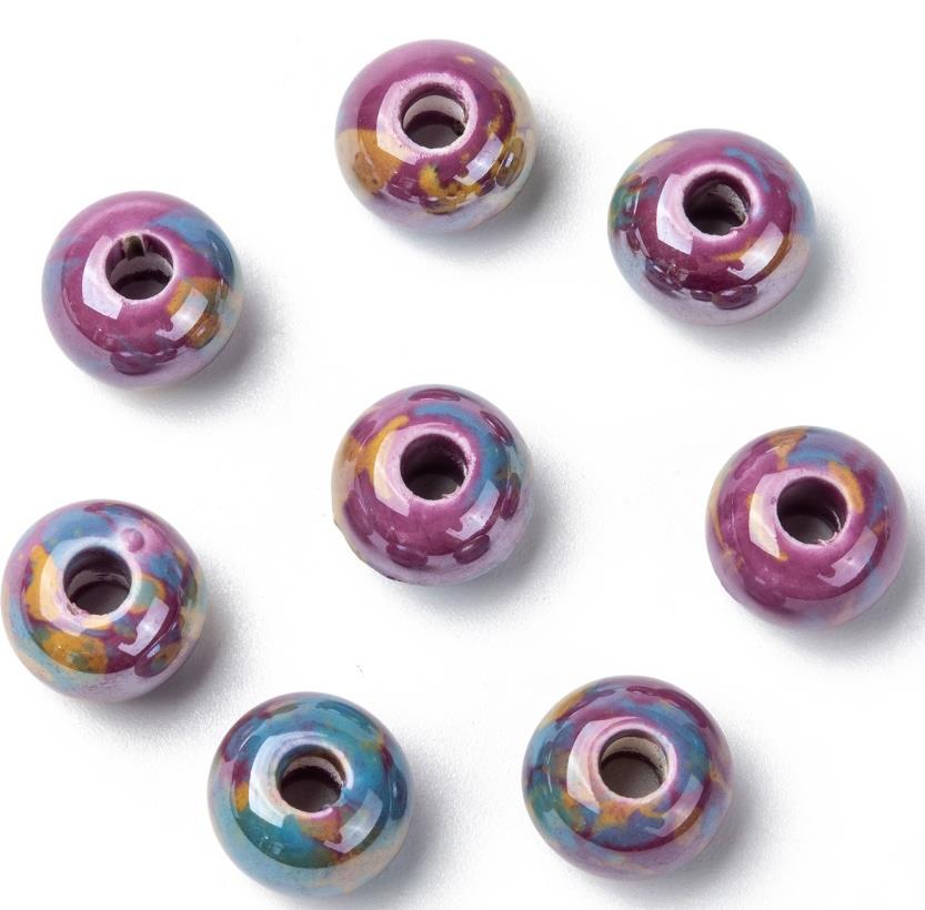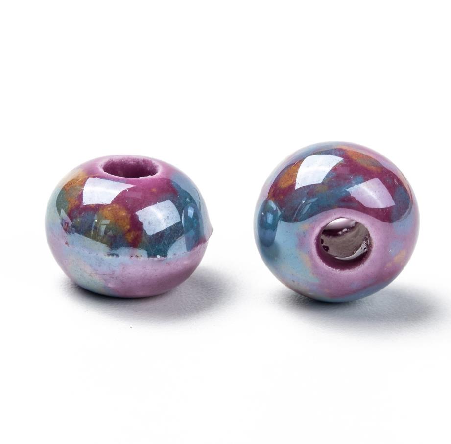 10 PORCELAIN RONDELLE DONUT BEADS 12mm ORCHID PURPLE PEARL LARGE HOLE 4mm GLS81