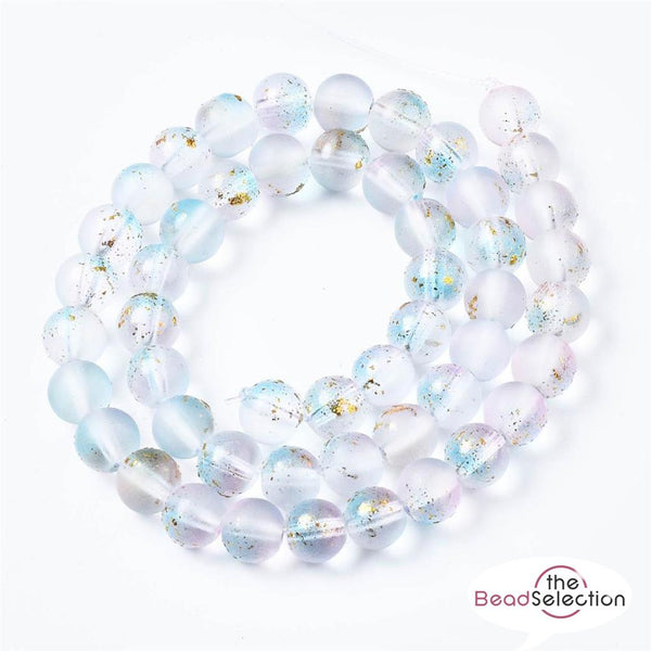 100 FROSTED GLITTER ROUND GLASS BEADS CLEAR WHITE PINK 6mm JEWELLERY MAKING FR16