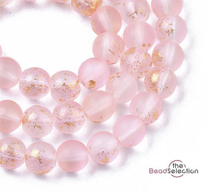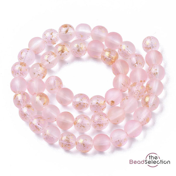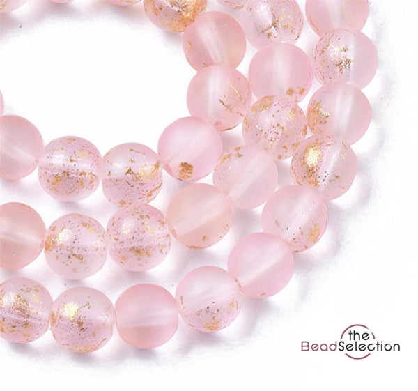 100 FROSTED GLITTER ROUND GLASS BEADS PINK 4mm JEWELLERY MAKING FR18