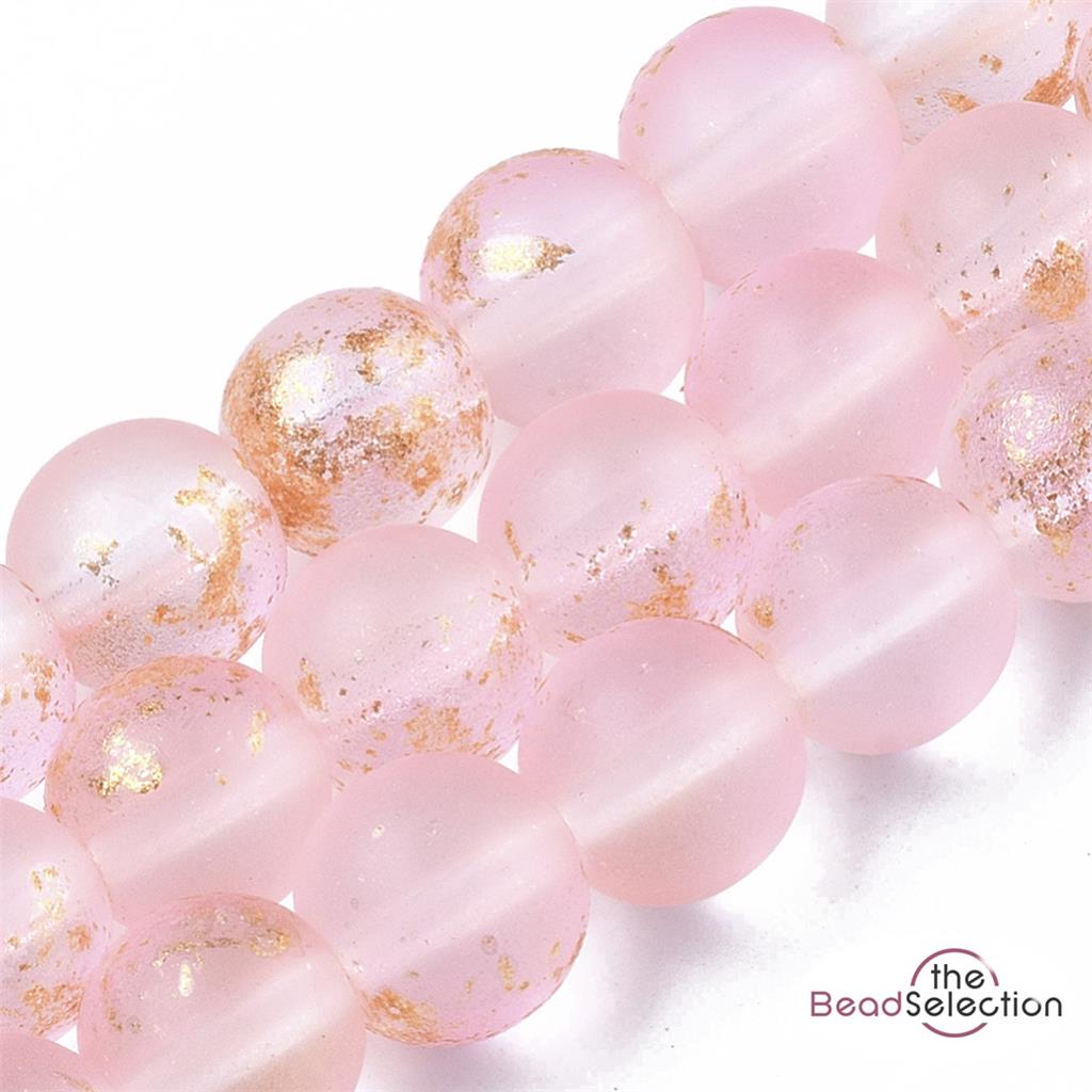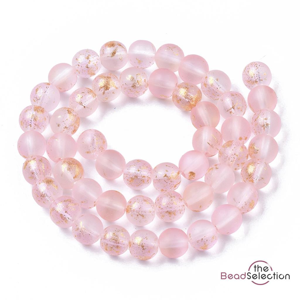 100 FROSTED GLITTER ROUND GLASS BEADS PINK 6mm JEWELLERY MAKING FR11