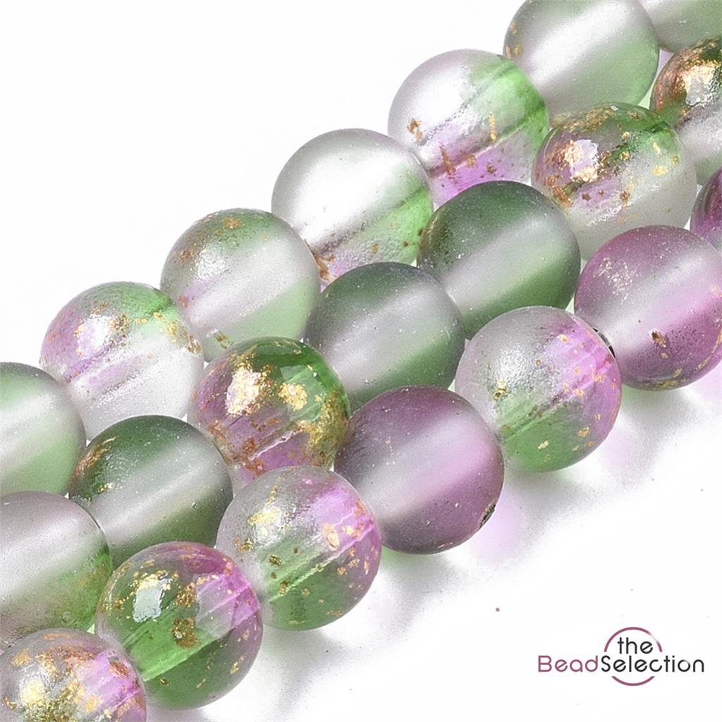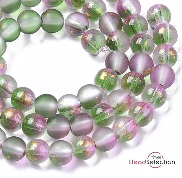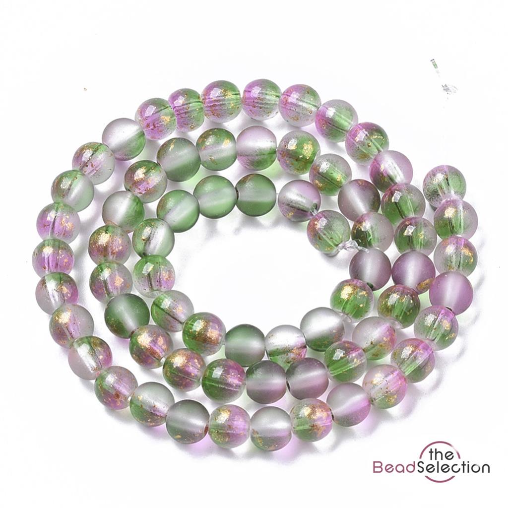 100 FROSTED GLITTER ROUND GLASS BEADS PINK GREEN 4mm JEWELLERY MAKING FR24