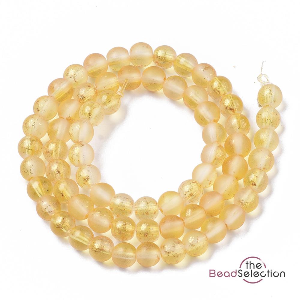 100 FROSTED GLITTER ROUND GLASS BEADS YELLOW 4mm JEWELLERY MAKING FR21