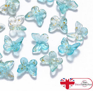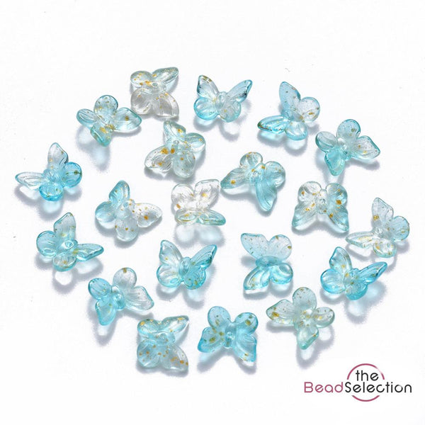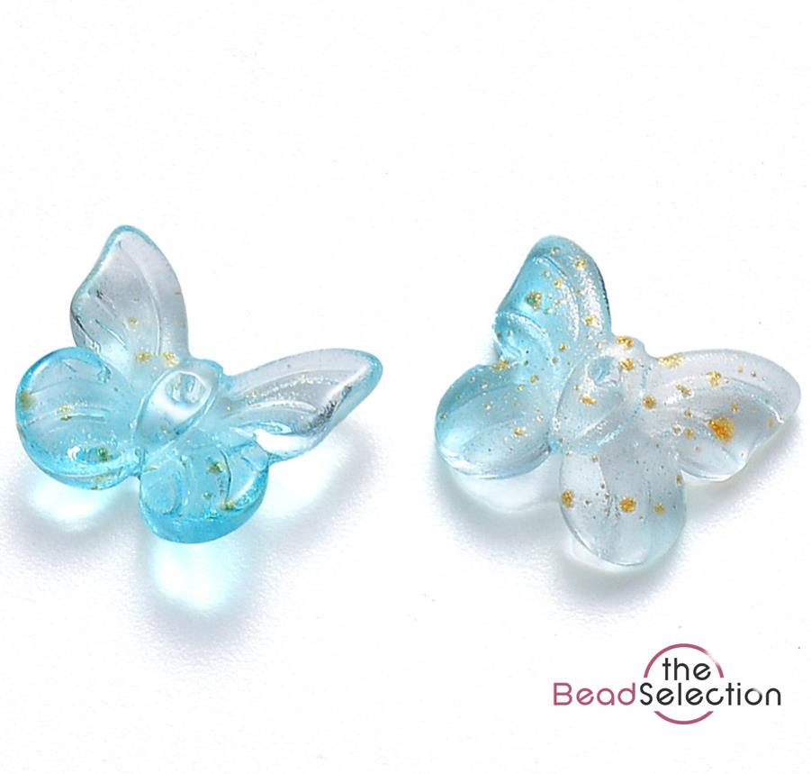 20 BLUE GOLD GLITTER BUTTERFLY GLASS CHARMS BEADS 10mm TOP QUALITY GLS92