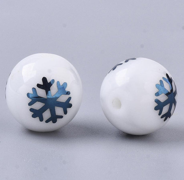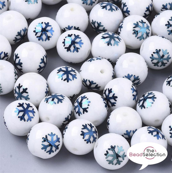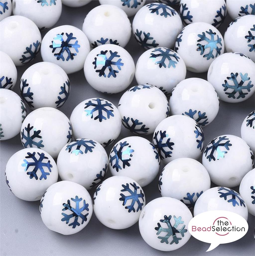 20 BLUE XMAS SNOWFLAKE GLASS ROUND BEADS 10mm TOP QUALITY GLS50