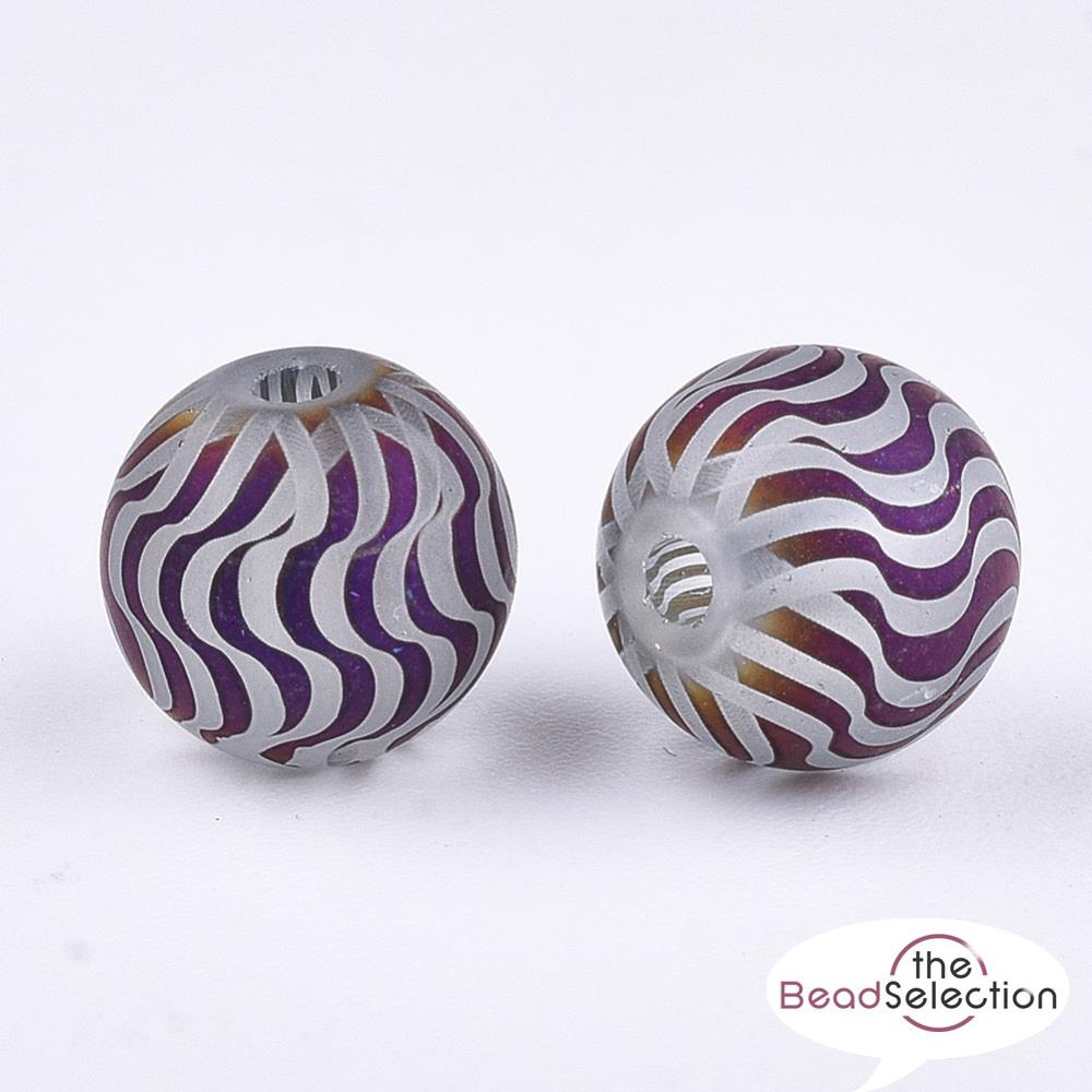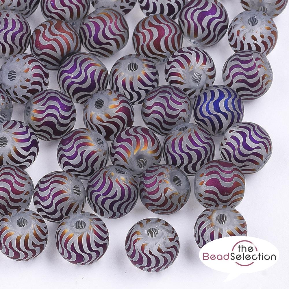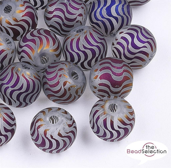 20 PURPLE FROSTED SWIRL STRIPED GLASS ROUND BEADS 8mm TOP QUALITY GLS103