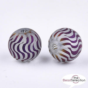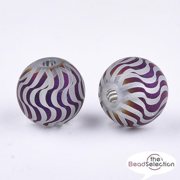 20 FROSTED PURPLE SWIRL STRIPED GLASS ROUND BEADS.