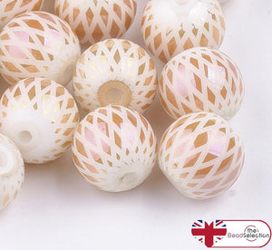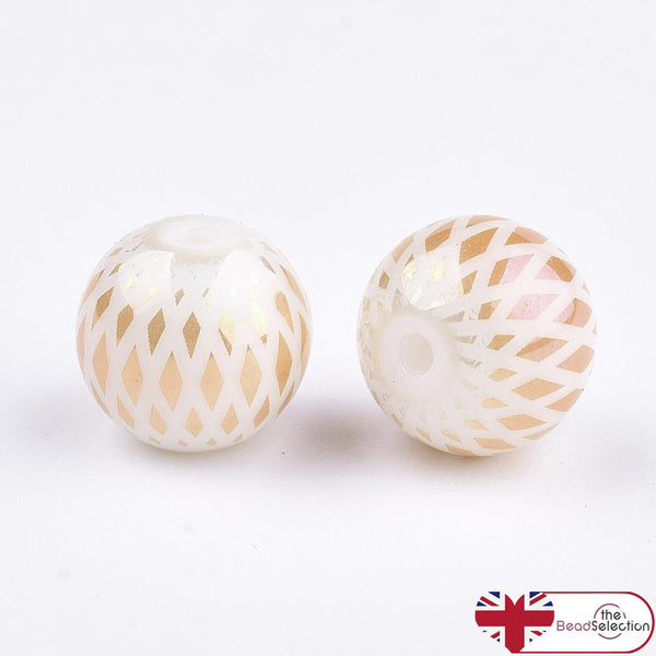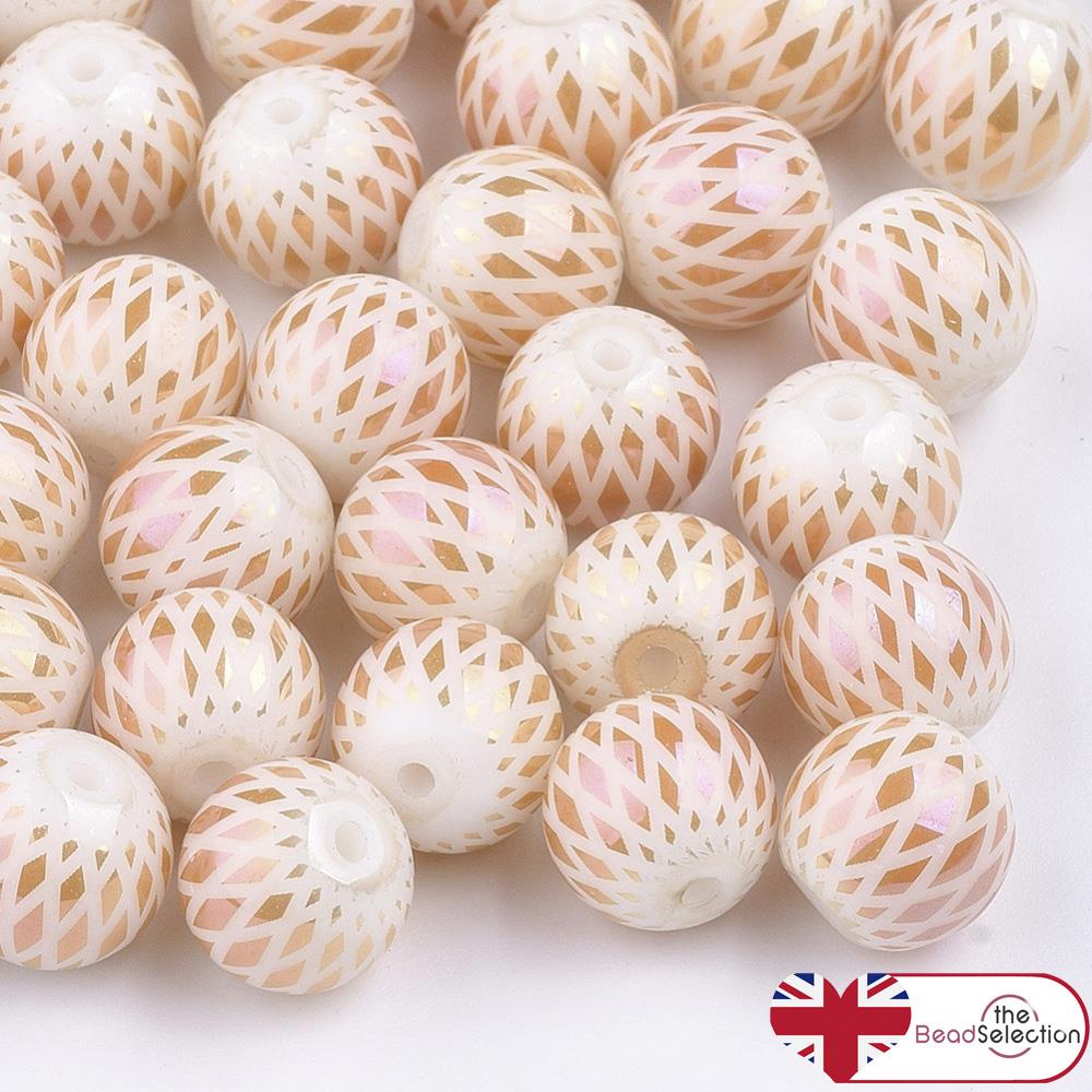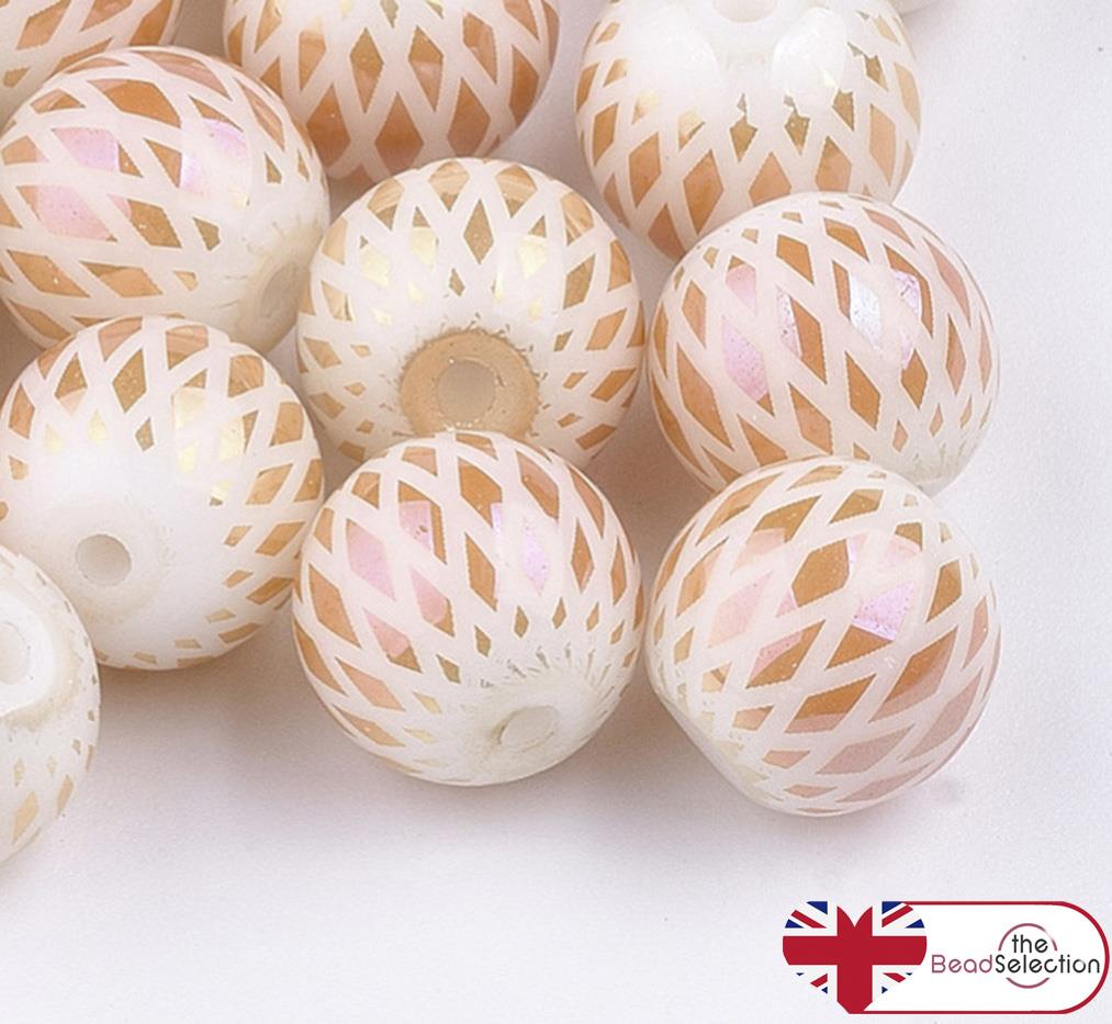 20 RAINBOW 'AB' ORANGE CHEQUERED GLASS ROUND BEADS WHITE 8mm JEWELLERY GLS165