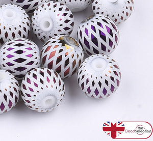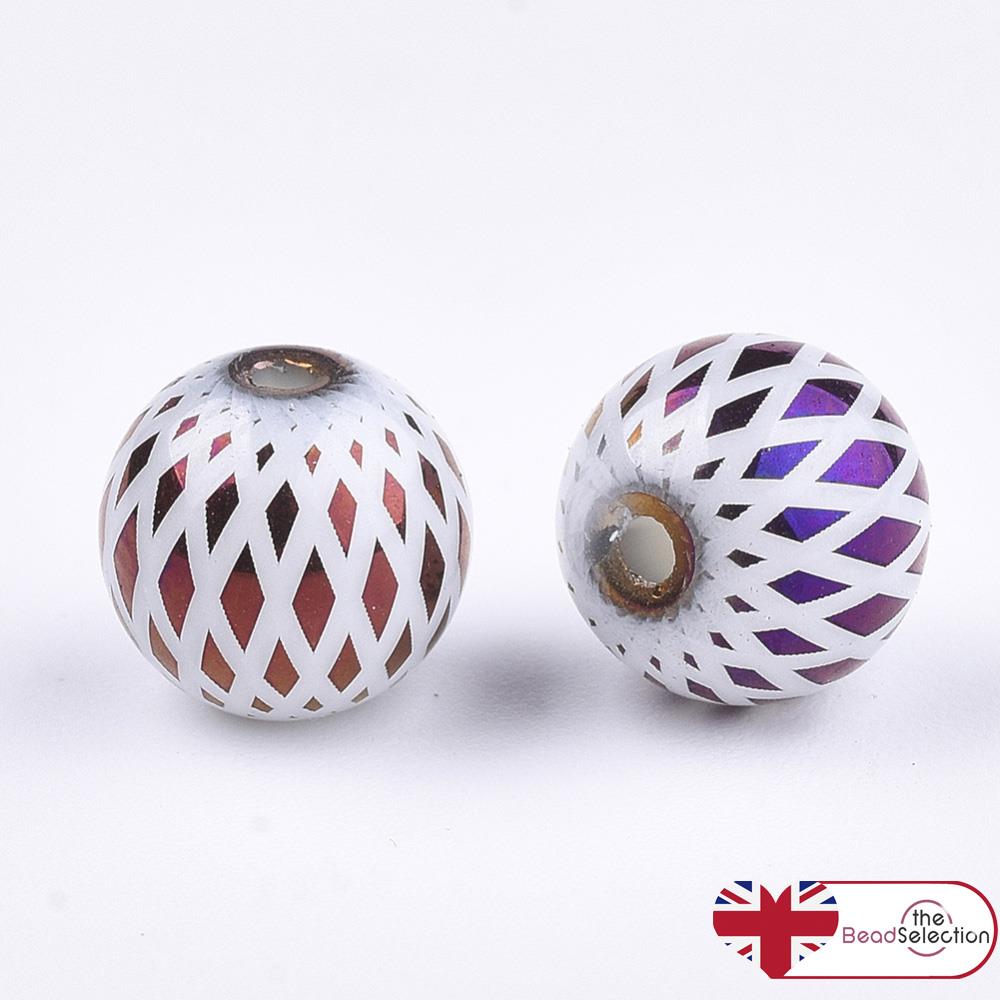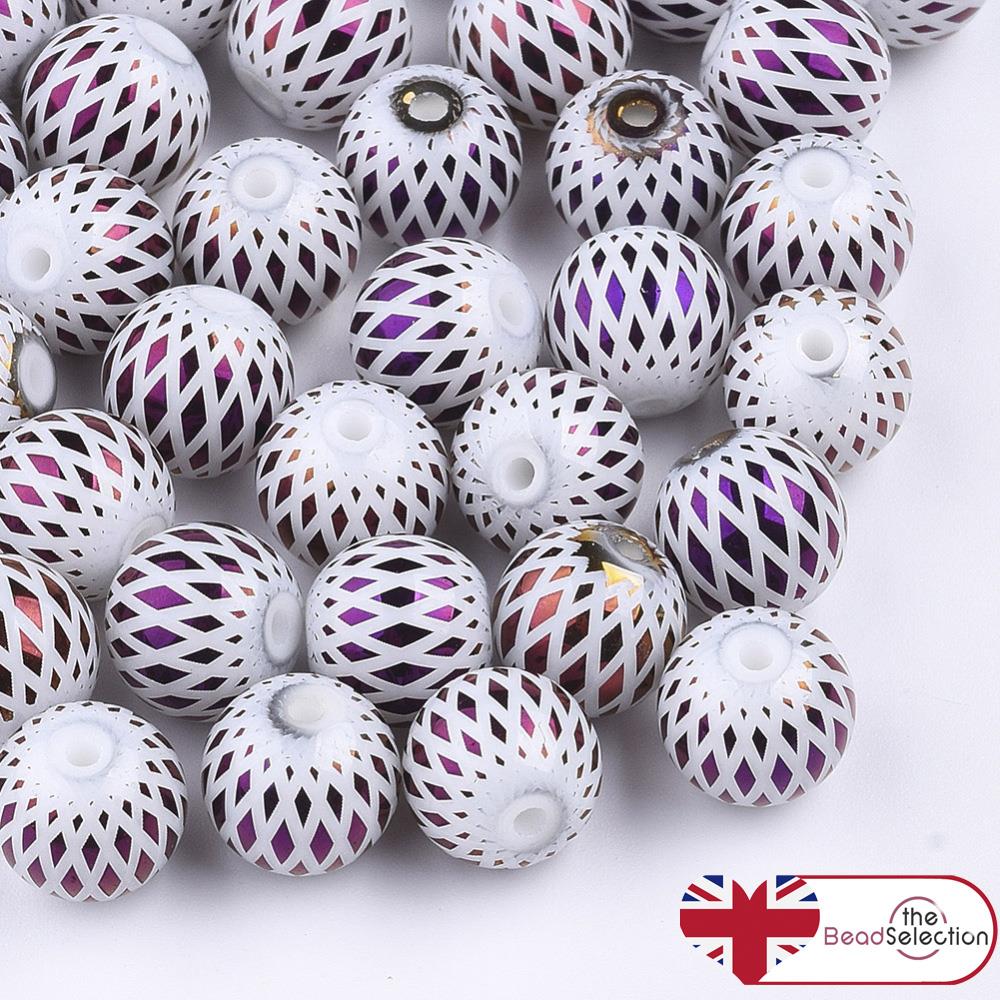 20 RAINBOW 'AB PURPLE CHEQUERED GLASS ROUND BEADS WHITE 8mm JEWELLERY GLS163