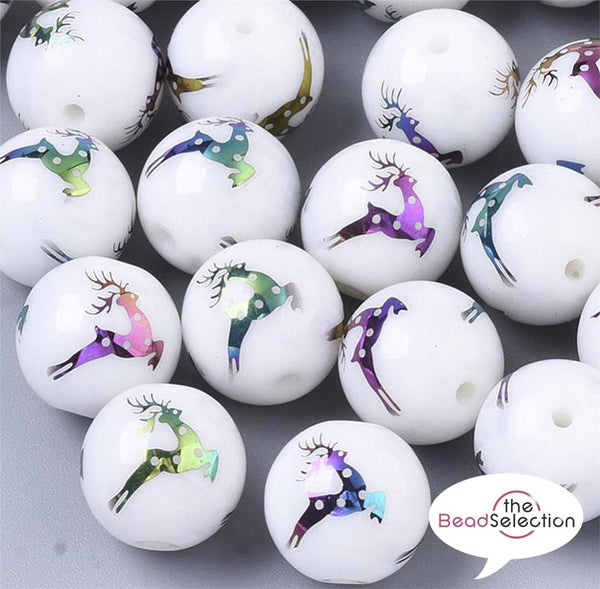 20 RAINBOW XMAS REINDEER GLASS ROUND BEADS 10mm TOP QUALITY GLS35