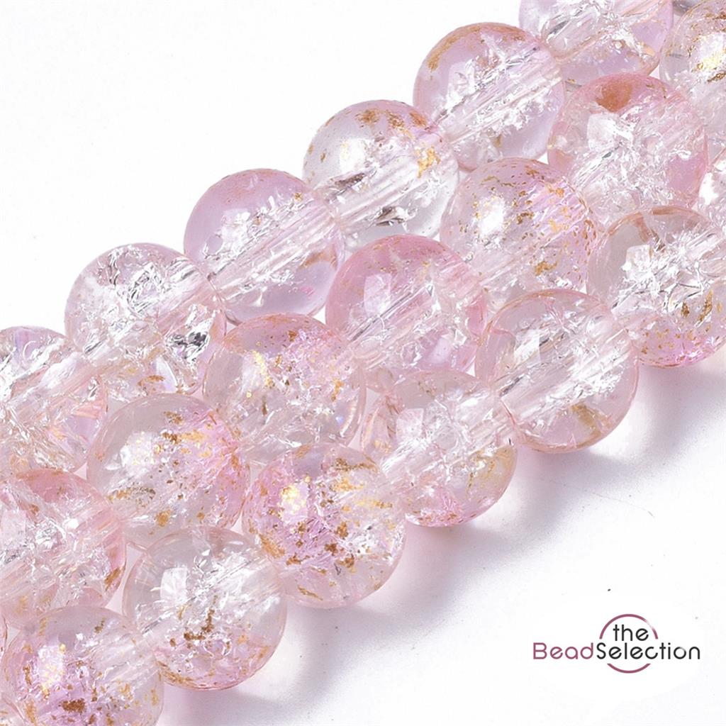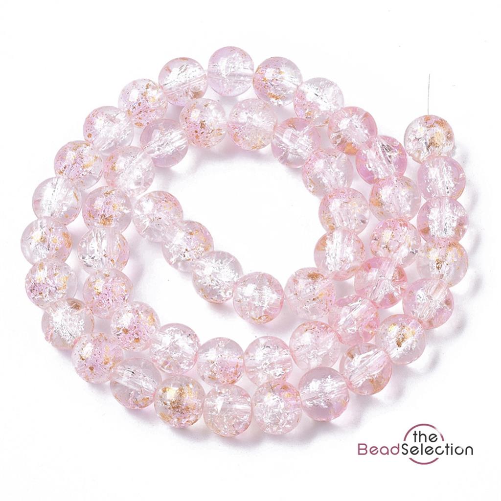 50 CRACKLE GLITTER ROUND GLASS BEADS CLEAR PINK 8mm JEWELLERY MAKING CRG7