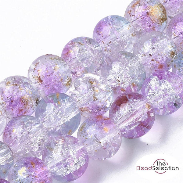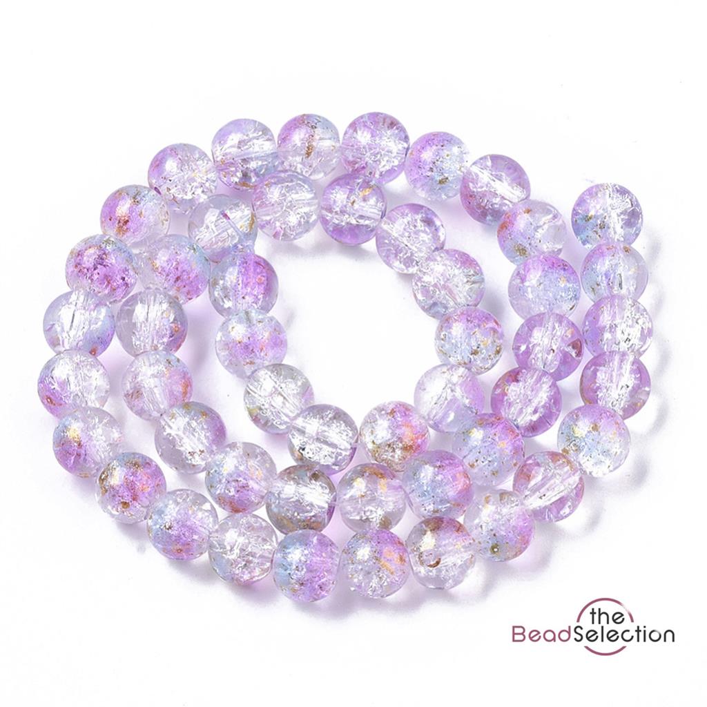 50 CRACKLE GLITTER ROUND GLASS BEADS CLEAR PINK BLUE 8mm jewellery making CRG6