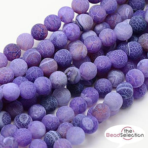 20 NATURAL CRACKLE FROSTED AGATE GEMSTONE ROUND BEADS VIOLET PURPLE 10mm GS22