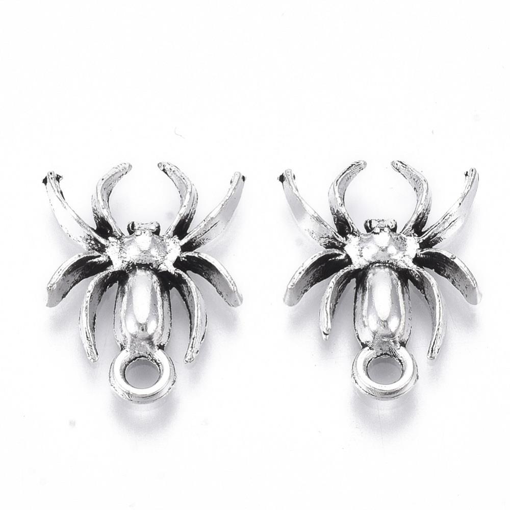 10 TIBETAN SILVER SPIDER CHARMS PENDANTS 18mm Jewellery Making C326