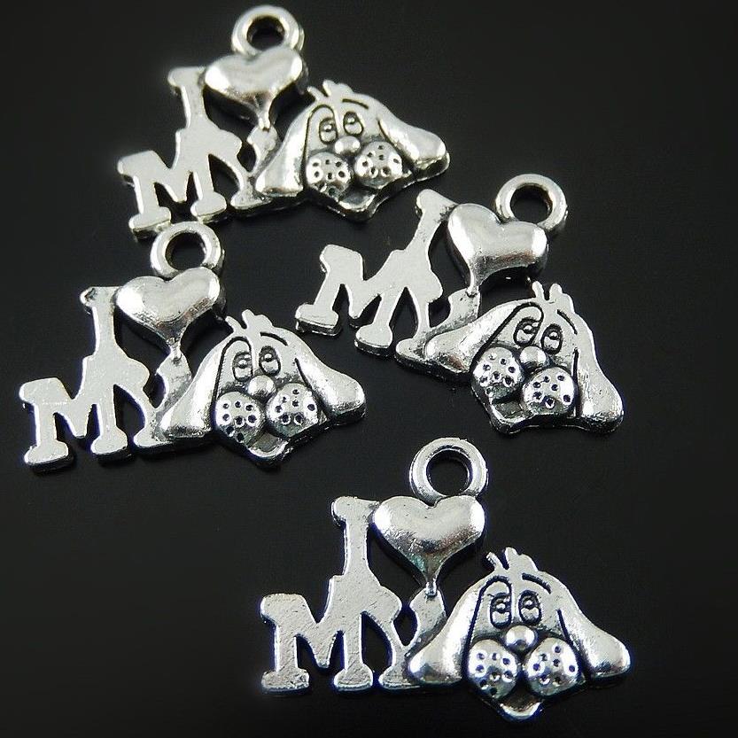 20 'I LOVE MY DOG' CHARMS PENDANT BRIGHT TIBETAN SILVER 18mm 3D C161
