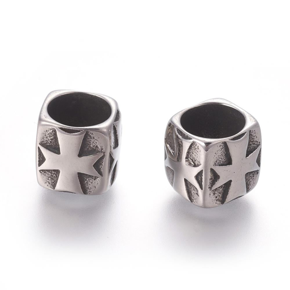 2 STAINLESS STEEL 304 CROSS SPACER BEADS 11mm ROUND LARGE HOLE 8mm STA30