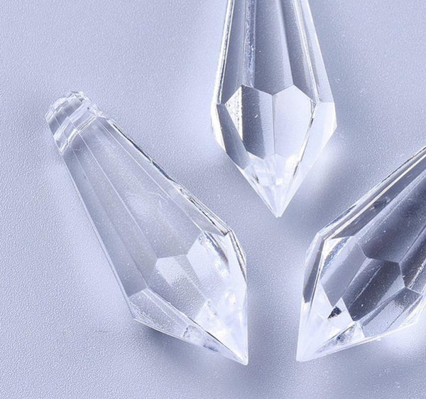 10 LARGE FACETED CLEAR ACRYLIC TEAR DROP SUN CATCHER PENDANT CHARMS 38mm ACR210