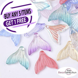 10 MERMAID TAIL GLASS CHARMS BEADS MIXED COLOURS 19mm JEWELLERY MAKING GLS112