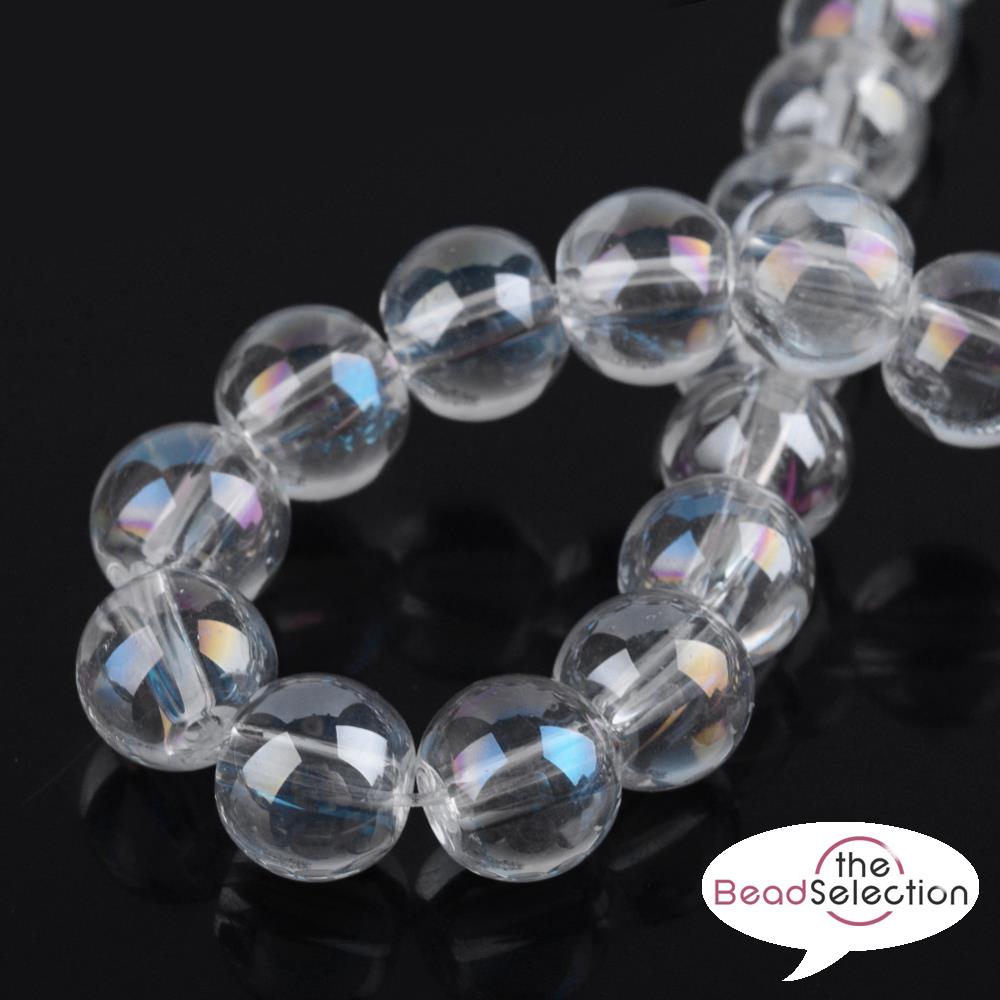 100 CLEAR 'AB' RAINBOW LUSTRE ROUND GLASS BEADS 8mm JEWELLERY MAKING GLS104