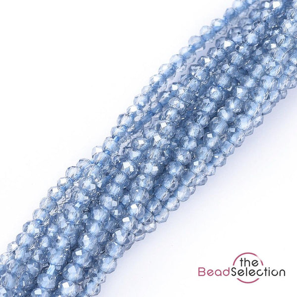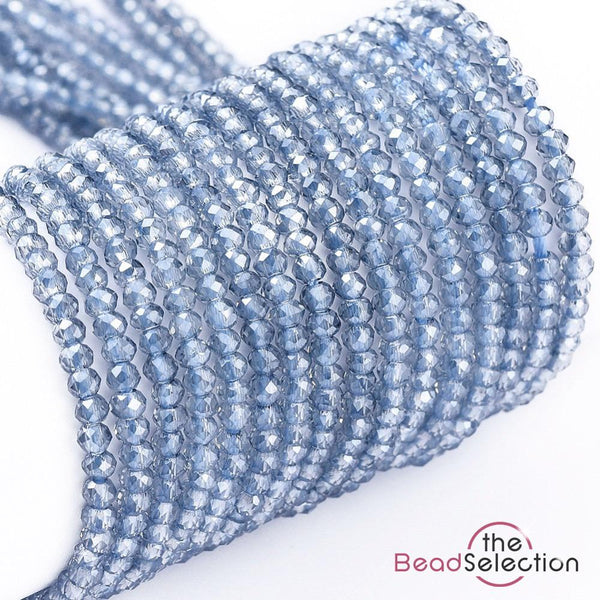Tiny Blue Faceted Glass Rondelle Round Beads 2mm x 1.5mm 240+ 1 STRAND GLS134