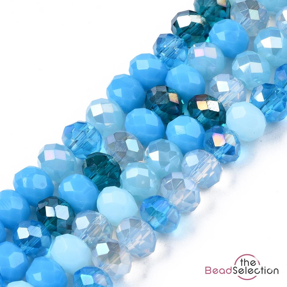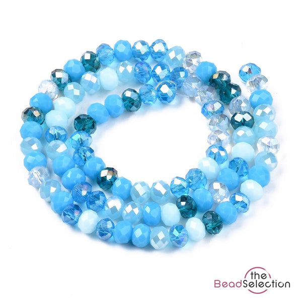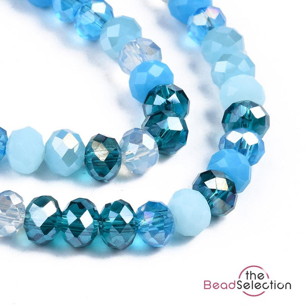 Faceted Glass Rondelle Round Beads Blue Mixed Crystal 6mm 90+ 1 STRAND R7